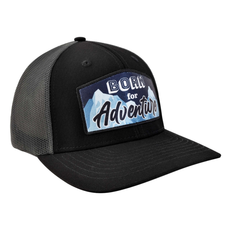 Gorra con malla y ajustador de plástico, BORN for Adventure, negro/gris