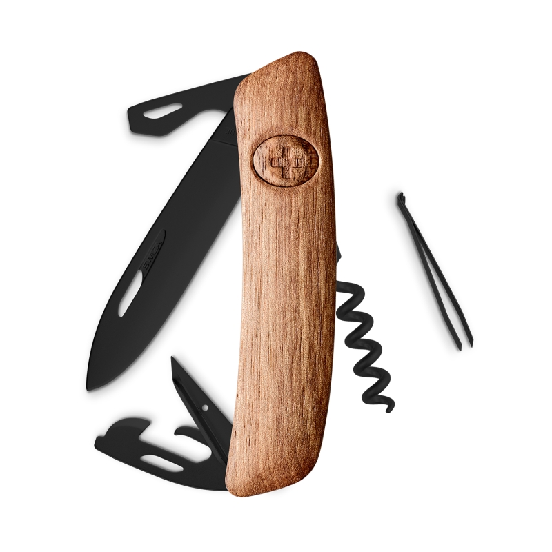 Navaja suiza de la línea ALL BLACK que se distingue por su acero inoxidable con acabado PVD negro. Esta capa de PVD le da una protección adicional contra el desgaste y la corrosión sin restarle elegancia ni practicidad. Su cacha está elaborada de madera de nogal que la hace sobresalir de entre todas las navajas suizas del mercado.