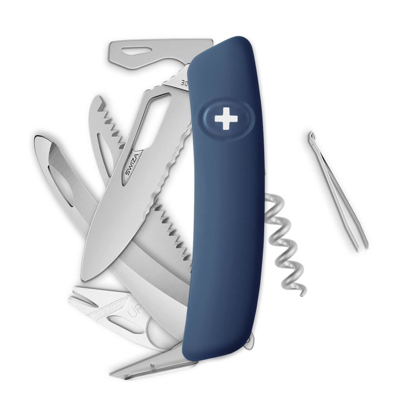 Navaja suiza diseñada especialmente para ser manipulada de manera fácil con una sola mano. Toda la línea “SINGLE HAND” cuenta con ese tipo de hoja que ha sido pensada para manipularla ya sea sólo con la mano derecha o izquierda, de ahí el nombre de Single Hand o “Una sola mano” en español. Su acero es de muy alta calidad (440/57 HRc), además cuenta con un acabado mate. Tanto el material como su diseño han sido cuidadosamente estudiados y elegidos para ofrecer al usuario final el mejor agarre; además, cuenta con una herramienta patentada que es el tick tool el cual muestra cómo SWIZA une tradición e innovación.