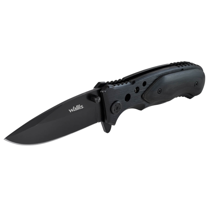 Navaja Wallis de bloqueo con hoja lisa en color negro, el mango es de madera de olivo con acero. Tiene bloqueo manual con tornillo de apoyo. El mango tiene un clip para que la lleves cómodamente ya sea en la cintura o en tu vestimenta. Ideal para actividades en el exterior, como excursiones, campismo o senderismo.